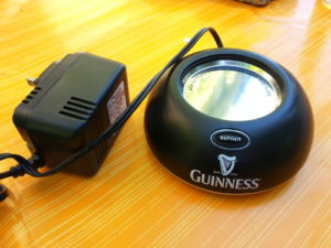 - Den Guinness Surger an die Steckdose anschließen und auf die Metallplatte des Geräts etwas Wasser geben (nicht zu viel). Das Wasser ist dafür da, dass die Ultraschall Vibrationen besser vom Surger in das Glas übertragen werden.