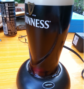 Der Surger ist ein im Jahr 2006 von Guinness auf Markt gebrachtes Gerät (v.a. in Großbritannien), hauptsächlich um Pubs, die Guinness verkaufen möchten, aber Mangels Platz oder Umsatz keine Zapfanlage mit Fässern betreiben können, den Ausschank von Guinness zu ermöglichen. Es gibt auch eine Variante, die für Privathaushalte konzipiert ist (leider in Deutschland quasi überhaupt nicht verbreitet, die Pub-Variante des Surgers hab ich bisher in Deutschland auch noch nicht gesehen). Leider wird dem Surger nachgesagt, dass für ihn wenig Werbung gemacht wurde und er deshalb nicht so bekannt ist. Er ist in Großbritannien nicht mehr im Handel, sondern nur noch über eBay erhältlich, teilweise zahlt man stattliche Summen für einen Surger.