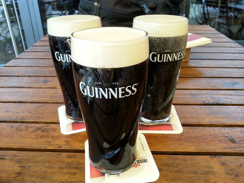 - Guinness Extra Stout aus der Flasche. Wie ich finde nicht sonderlich lecker, ist eine andere Sorte wie das vom Faß gezapfte und schmeckt etwas fade.